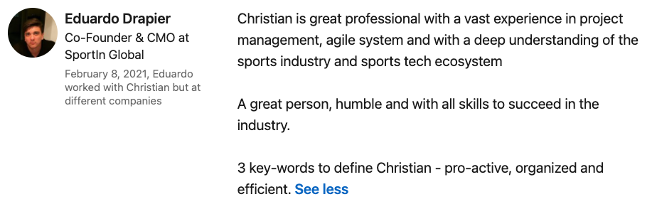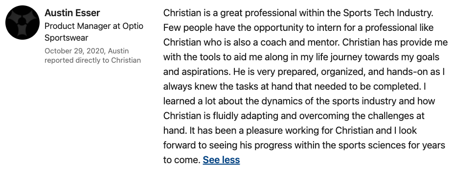 Task: Christian was brought on as a project lead to launch the startup’s first industry-wide conference series, The SportIn Global Summit, in efforts to attract both job posters and users to the recruitment platform.